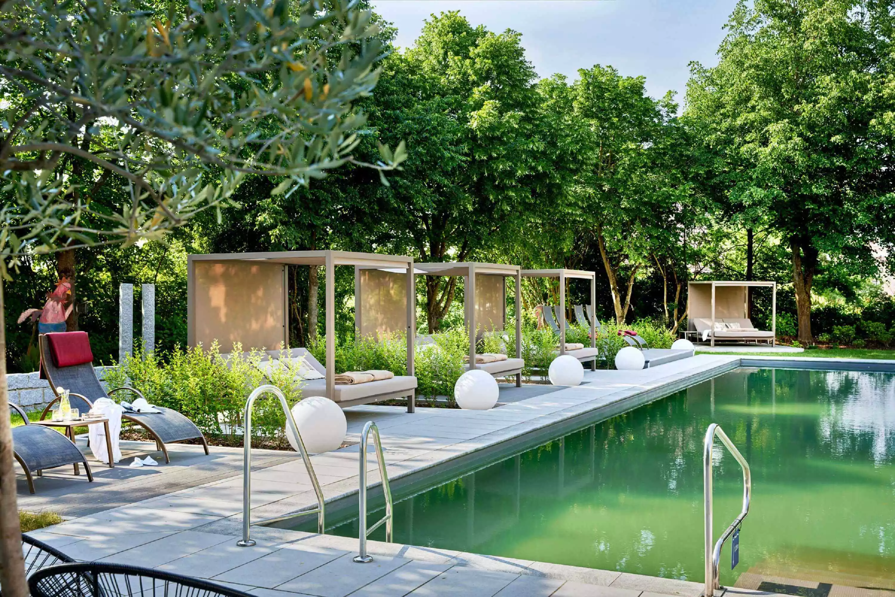 Der Bio-Außenpool ist von 6:00 - 9:00 Uhr und von 12:00 - 22:00 Uhr geöffnet.